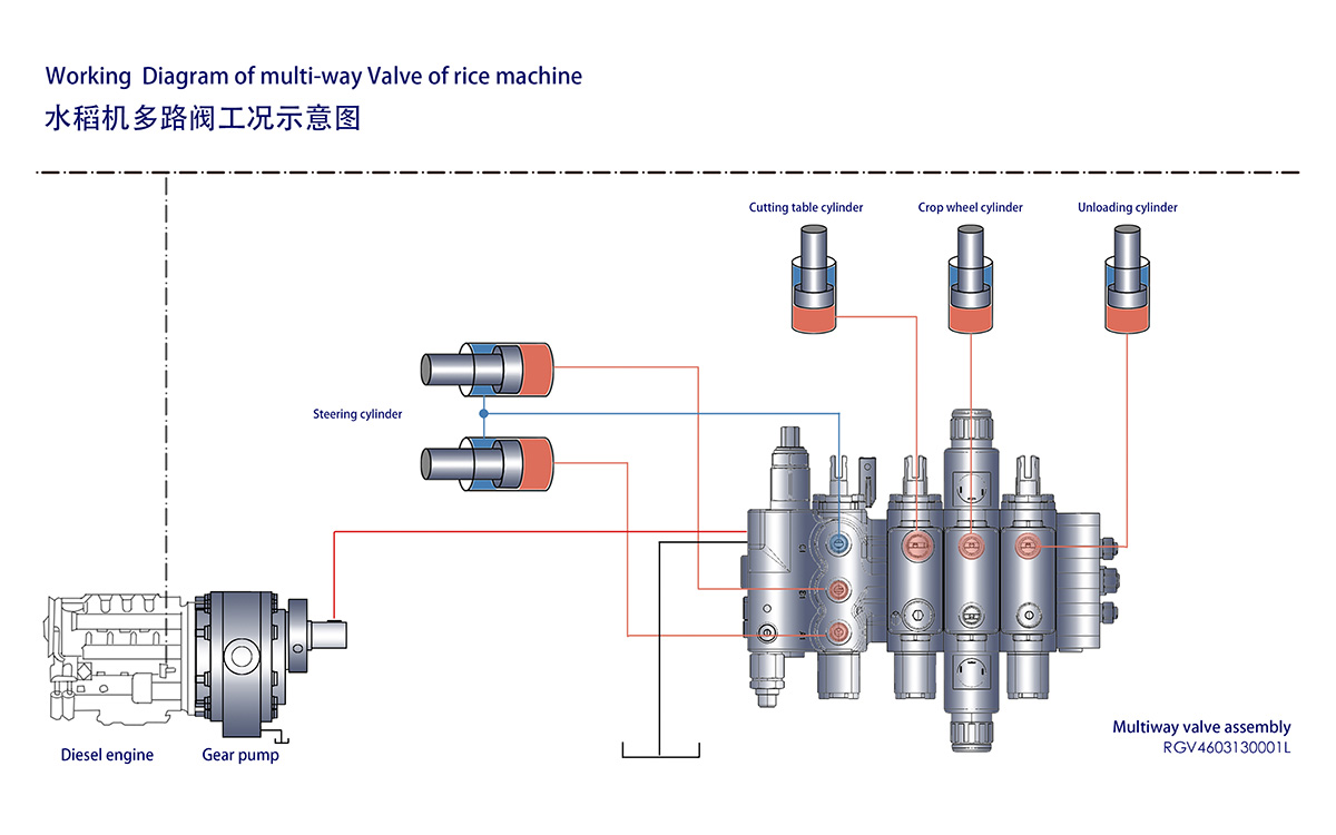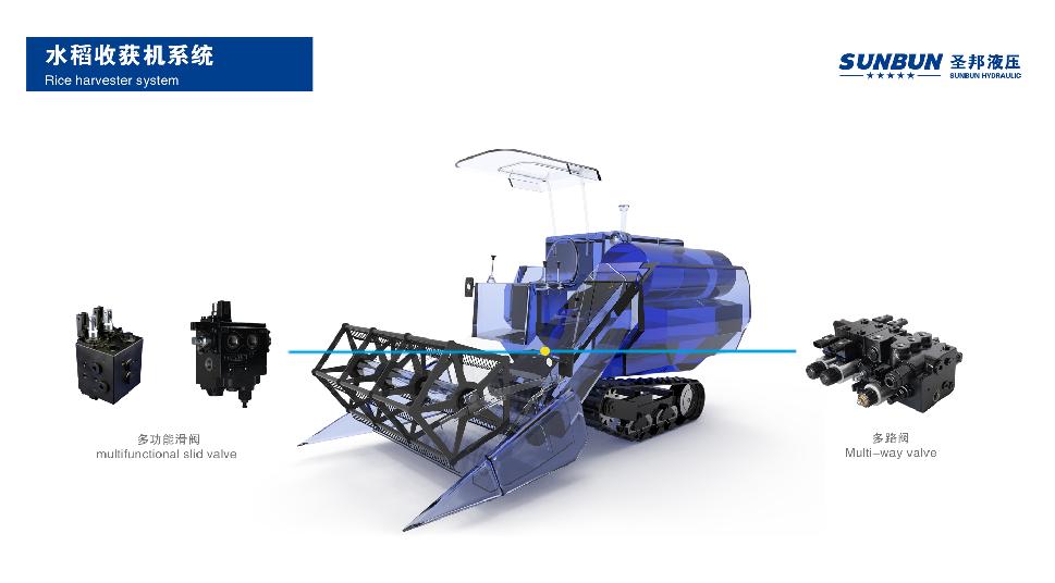 The combination of fully electric electromagnetic direct-drive and manual control enables the operation of multi-way valves. It allows for prioritized steering, and when maneuvering in the field, simultaneous steering and cutting platform actions can be performed, greatly facilitating operations. The mid-position pressure loss is low, resulting in significant energy savings.